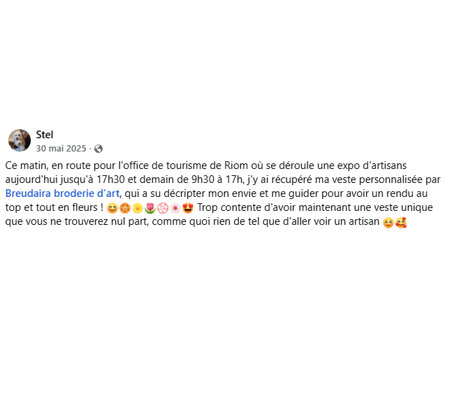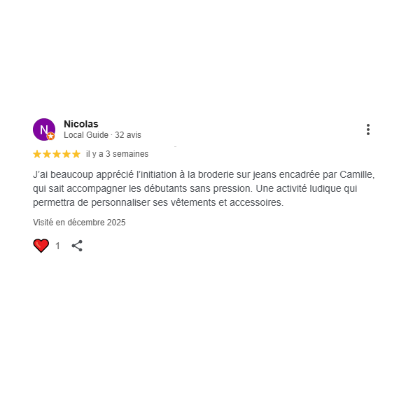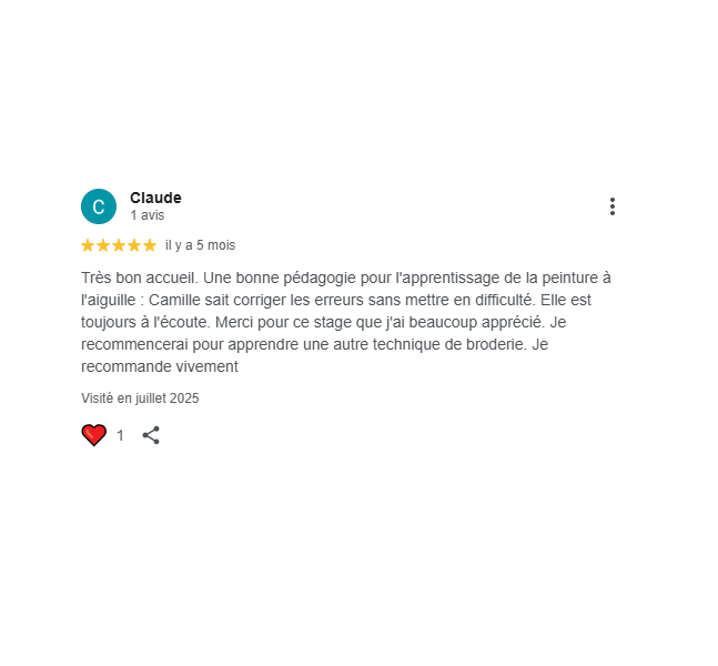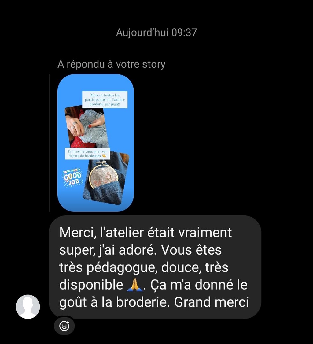 Que vous soyez totalement débutant ou que vous ayez déjà pratiqué, adulte ou enfant, je peux vous accompagner dans l'apprentissage de différentes techniques de broderie, n'hésitez pas à vous renseigner!